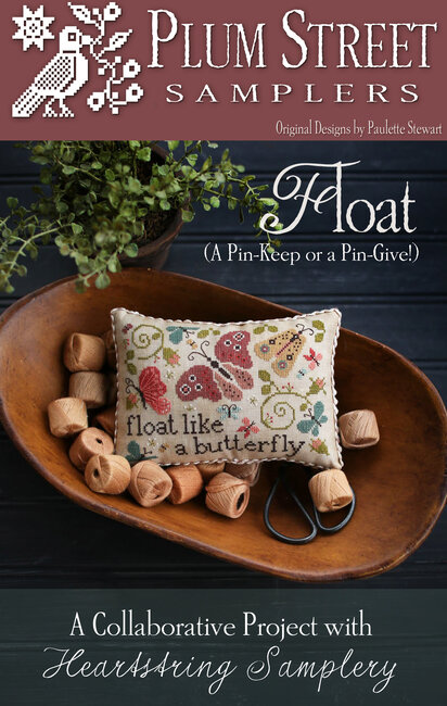 Float is a collaboration with Heartstring Samplery. This cute little design features butterflies and the words “Float like a butterfly.”