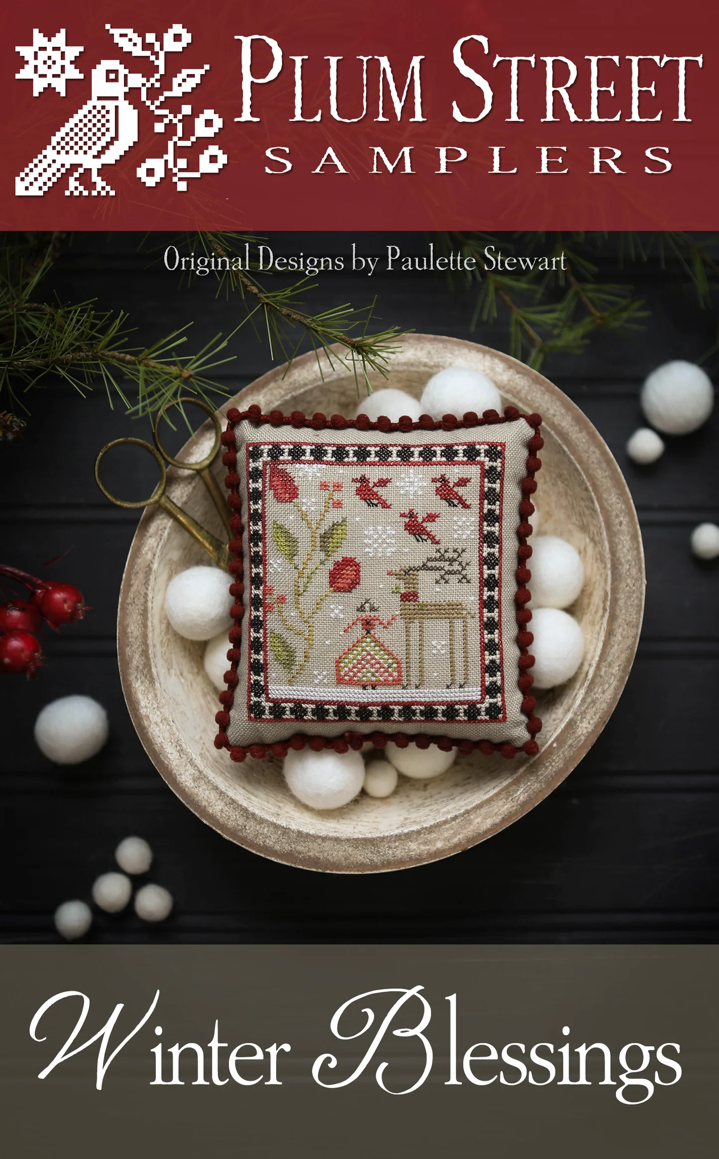 The model was stitched over 2 threads on 36 ct. Saltbush from Fox and Rabbit with DMC, Weeks Dye Works and Classic Colorworks floss. Stitch Count: 61w x 66h.